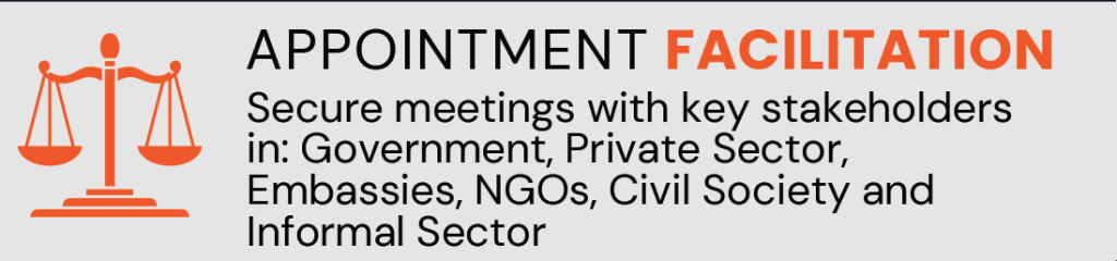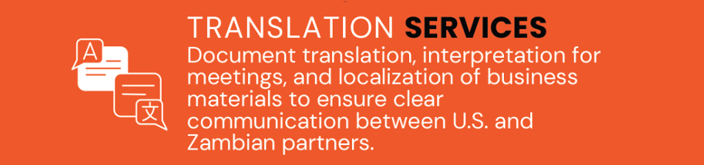 The USAfrica Business Bridge serves as a dynamic platform connecting businesses and entrepreneurs seeking to establish or expand operations between the United States and Africa (Zambia), We offer administrative and logistical support to assist in makijng appointments, chaufeur services, arranging meetings and events, hotel reservations and more.